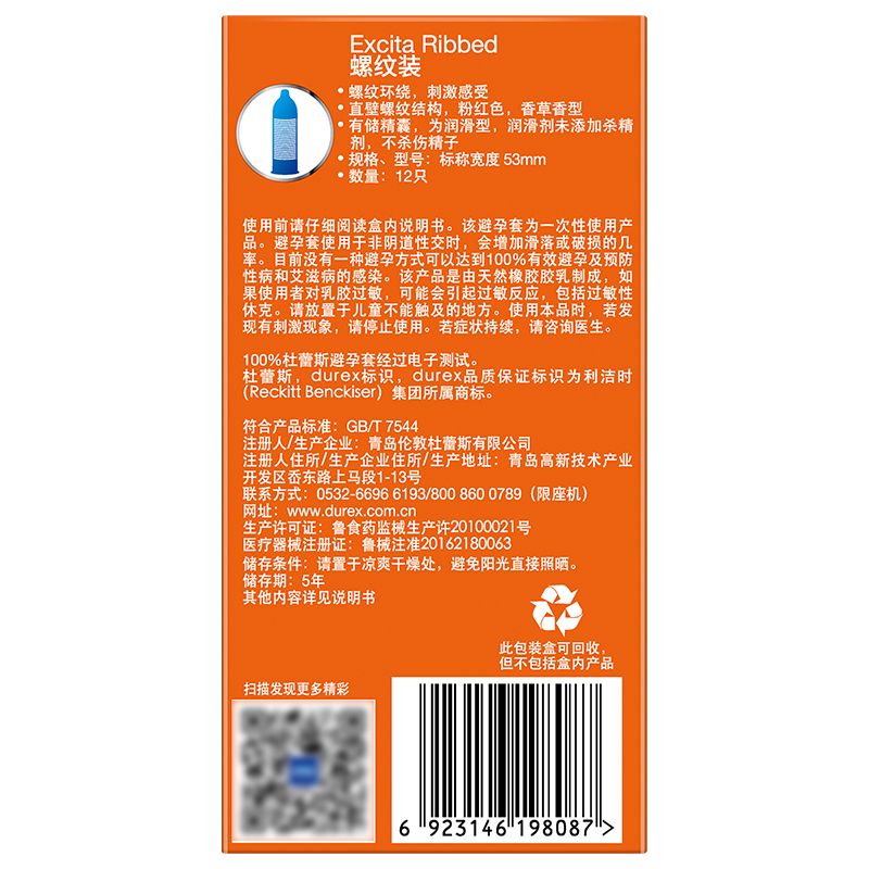 【避孕润滑】杜蕾斯螺纹12只装